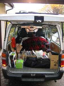 旅する男子の持ち物は、まだ楽々車一台に収まるほど。